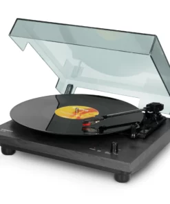 Whatever your choice in music, you can easily switch from 33 to 45 RPM. For more volume, connect external speakers via the RCA jack on the back of the turntable, you can now fill any size room with music. The turntable also has an output for headphones, so you can listen to your favorite music without disturbing anyone else.