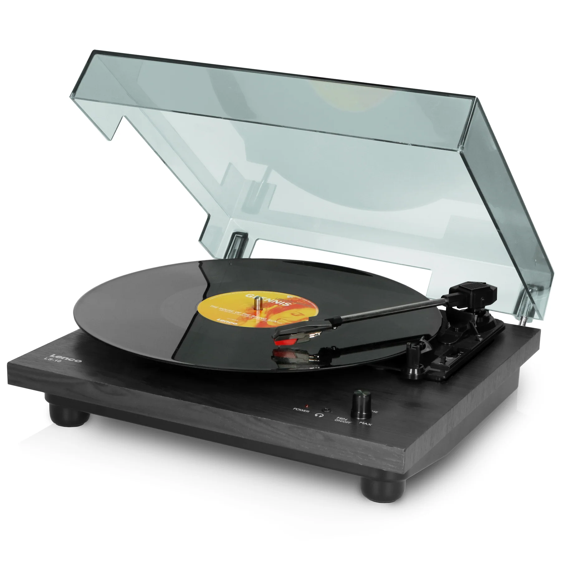 A contemporary turntable with two built-in speakers is the Lenco LS-10. Enjoy your favorite record with just one button click. The Lenco LS-10 effortlessly puts your records to life, forget difficult music systems.