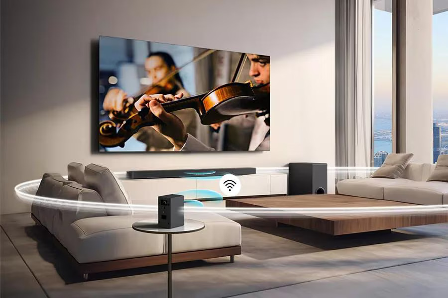 Make your home theater sound more immersive with 2.0 Ch rear surround speakers. Our new rear surround speakers have wireless connectivity—that means no special receiver needed to deliver an immersive audio experience.²