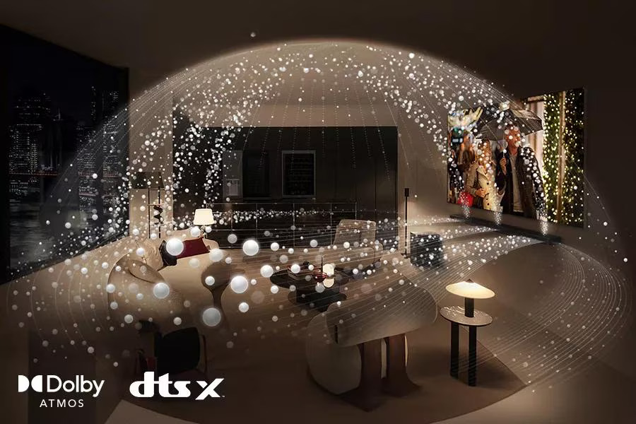 Take your home entertainment to a new level with 3 channels and a subwoofer that projects attention-grabbing audio power. The up-firing center channel lets you hear voices with superb clarity and still enjoy the thrilling sound effects. And with Dolby Atmos®² and DTS:X®³ technologies, you will experience a unique spatial sound that fills even the largest rooms.