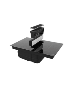 Master Kitchen induction hob with an integrated hood has a stylish aesthetic with its black glass ceramic design.