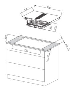 Brand: Master KitchenPower Levels: 15+boost / Suction 3+boostNumber of cooking zones: 5 Cooking ZonesHood Motor Power: 160 WCooking Zone Power: Right rear area power: 2200W/3600W, Right front area power: 2200W/3600W,Left rear area power: 2200W/3600W, Left front area power: 2200W/3600W, Right Flex Zone Power: 3300(B)/3700WCook top type: InductionControls: Slide touch controlsFeatures: Booster mode, Bridge Function, Child safety, Independent timer for all zones, Pan Size DetectionAir-Flow: 636 m3/hFilter type: Active carbon filter, Aluminum grease filtersDuct Type: Duct Out OnlyNoise Level: 69dBDimensions: (WxDxH) 800x520x230 mmWarranty: Parts 3 years & Labour 3 years