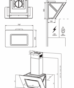 Brand: Master KitchenMotor Power: 1x45WAir-Flow: 650m³/hSettings: 3 Speed settingsNoise Level: 59 dBLighting: 2×1.5 WControls: Motion DetectionFeatures: Hand Sensor, Booster Function, Filter change reminderEnergy Label: A+++Energy Consumption: 15 kWh/AnnumInstallation Type: Wall-mountedDimensions: (WxDxH) 797x400x392 mmWarranty: Parts 3 years & Labour 3 years