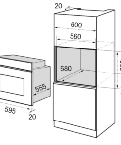 Brand: Master KitchenOven capacity: 70LNumber of cooking functions: 9 cooking functions, Convention cooking, Defrosting, Double Grill, Double Grill with Ventilation, Eco, Grill, Lower Static, Static cooking with ventilation, Traditional cookingTemperature Settings: 50 – 250 °CTimer: Timer with end alarm, YesInterior Light: yesAdditional Features: Circular heating element, Removable internal glass, Tangential cooling ventilation, Triple glazed doorEnergy Label: old-AEnergy Consumption: 0.99 kwhEnergy Consumption With Fan: 0.79 kwhDimensions: Depth 56.6cm, Height 59.6cm, Width 59.5cmWarranty: Parts 3 years & Labour 3 years