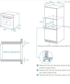 The cooling fan and the triple or quadruple glazed glass door ensure that any furniture in contact with the oven does not overheat and that the door stays cool.