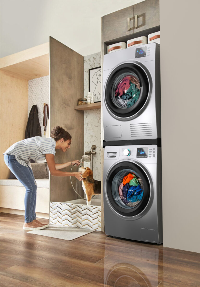 The new Torre Noir stacking kit allows you to organize your laundry room by stacking your dryer on top of your washing machine, saving valuable space.