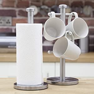 With an airtight inner seal across each storage canister and a robust stainless steel body, you can ensure maximum freshness for your tea, coffee, and sugar. Meanwhile, the color-coordinated bread container has built-in ventilation to ensure optimal freshness. Finally, the matching towel pole and mug tree offer a stylish finishing touch to your kitchen.