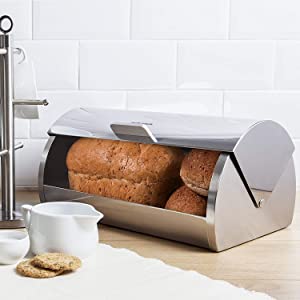 This bread bin features a durable stainless steel body, providing a visual accent for your countertop without sacrificing construction quality.
