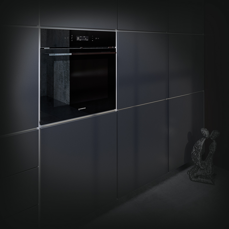 Discover the NorChef MO 6800 DB — a 67-litre multi-function built-in oven featuring sleek black glass design with chrome handle, full-touch control panel, and 10 cooking modes including “Home-Baked”. Highlights include soft-close door, easy-clean enamel interior, telescopic guides, child-lock safety, and energy efficiency class A. Refined design meets advanced performance for your kitchen.