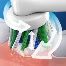 The Oral-B PRO comes with a round brush head that surrounds each tooth for cleaner teeth and healthier gums, removing up to 100% more plaque compared to a manual toothbrush.