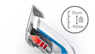 Cut your hair to the exact length you want. Just select one of the 11 length settings between 3 mm and 21 mm in 2 mm increments, or remove the comb for a close 0.5 mm trim.