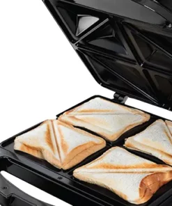 The deep plates of this sandwich maker provide enough space to pack your 4 sandwiches full of a whole range of delicious ingredients. You can make a ham and cheese toastie with a crispy brown texture in no time.