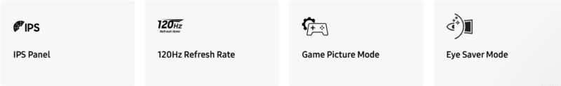 Brand: SamsungDisplay Size: 27″Resolution: Full HDRefresh Rate: 120HzAspect Ratio: 16:9 Aspect RatioDisplay: IPSFeatures: Flicker SafeHDMI Ports: x2VESA: 100x100mmEnergy Label: DDimensions With Stand: (WxHxD) 612.7 x 470.0 x 200.4 mmDimensions Without Stand: (WxHxD) 612.7 x 360.9 x 36.2 mmWarranty: Parts 2 years & Labour 2 years