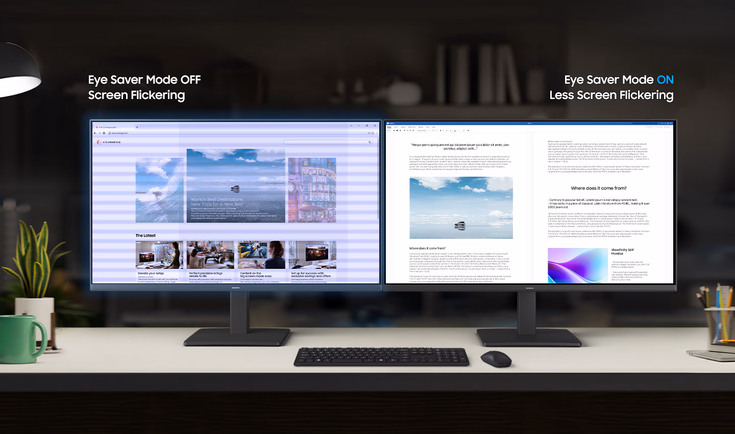 Care for your vision and stay comfortable, even during long sessions. Stay focused on your work with reduced blue light and screen flicker.