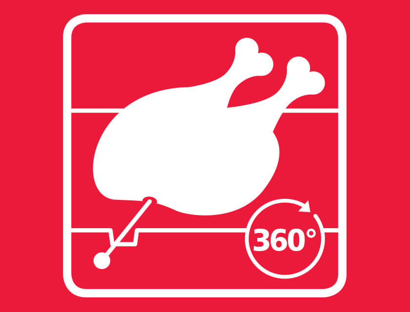 RoastPro Turnspit for all round cooking perfection. It delivers perfectly cooked whole chicken every single time.