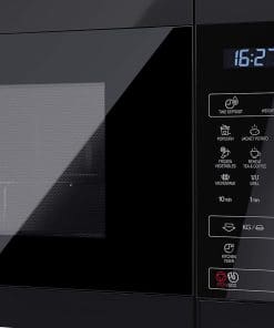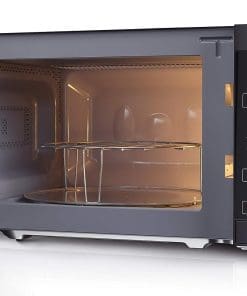 Elegant digital microwave oven with grill, boasting 800 watts of power. Features a convenient 20-liter capacity, a grilling function with 1000 watts, an interior turntable, and 11 selectable power levels.