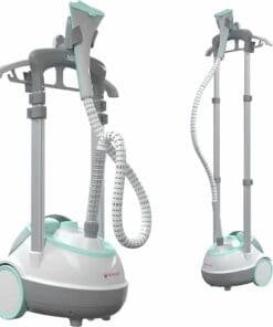 The SINGER SteamWorks Pro steamer heats up in just 45 seconds to provide 90 minutes of steady steam output to remove stubborn wrinkles from even the most difficult fabrics. The 360-degree collapsible rotating hanger and adjustable telescopic pole add extra convenience for use and storage. The SMART Auto-Off feature allows the unit to automatically shuts off once the water tank is empty, making the entire product perfectly safe to use.