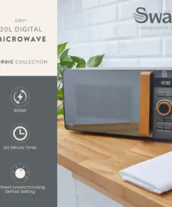 Cook meals in a fast and convenient way with this Swan Nordic SM22036LGREN grey digital microwave. Packed with six different power levels and 60-minute digital timer, you can reheat leftovers or cook up a ready meal with precision in no time. This 800W microwave also features an auto-cook function with pre-set options that sets the appropriate time and power level for different foods, taking the guesswork out of cooking.