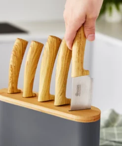 The 8-inch chef knife is perfect for mincing, slicing and chopping vegetables as well as jointing large cuts of meat. Effortlessly slice through crusty loaves of bread with the 8-inch bread knife, and tackle large cuts of meat with the 8-inch slicer knife. The 5-inch utility knife slices large vegetables and smaller cuts of meat, whilst the versatile 3.5-inch paring knife is great for everything from peeling fruits and vegetables to slicing and crushing garlic cloves.