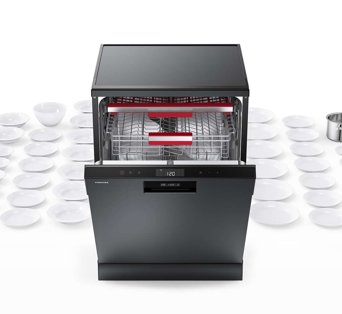 Experience the TOSHIBA standard for dishware cleanliness with our exclusive Hygiene Cycle. This advanced feature heats water to a remarkably high temperature of 70°C, effectively removing 99.99%* of bacteria and stubborn stains. Enjoy incredibly hygienic dishes and exceptional cleaning performance with TOSHIBA.