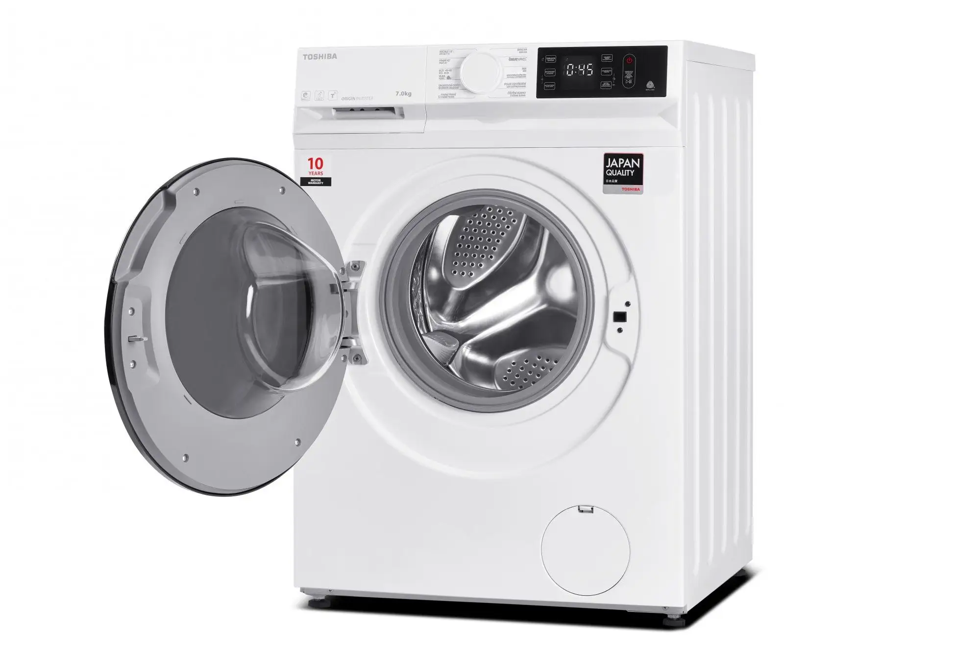 Brand: ToshibaSpin Speed (RPM): 1200rpmLoad capacity: 6kgNumber of Programs: Cotton, Steam washing, Mix, Greatwaves, Drum cleaning, Spin only, Eco 60-90, Sportswear, Quick 15, Washing 45′, Wool, Rinse and spinFeatures: Real Inverter, Steam washing, Eco Cold WashFunctions: Child Safety Lock, Delayed start, Start / PauseNoise Level: 76 dBEnergy Label: BEnergy Consumption: 49 kWh /100 CyclesInstallation Type: Free-StandingDimensions: (Wx Hx D) 59,5 x 85 x 44 cmWarranty: Inverter Motor – 10 Years, Parts 2 years & Labour 2 years