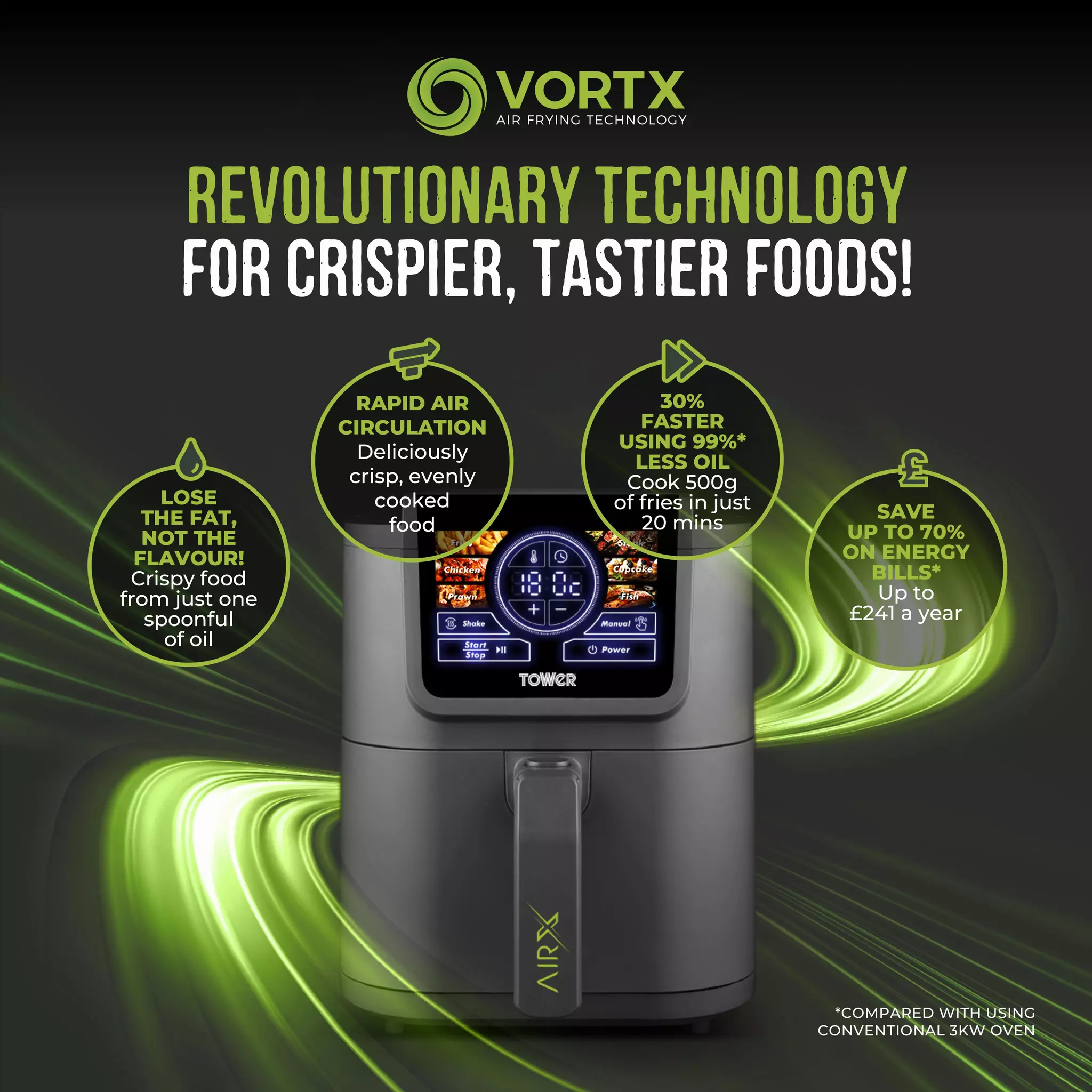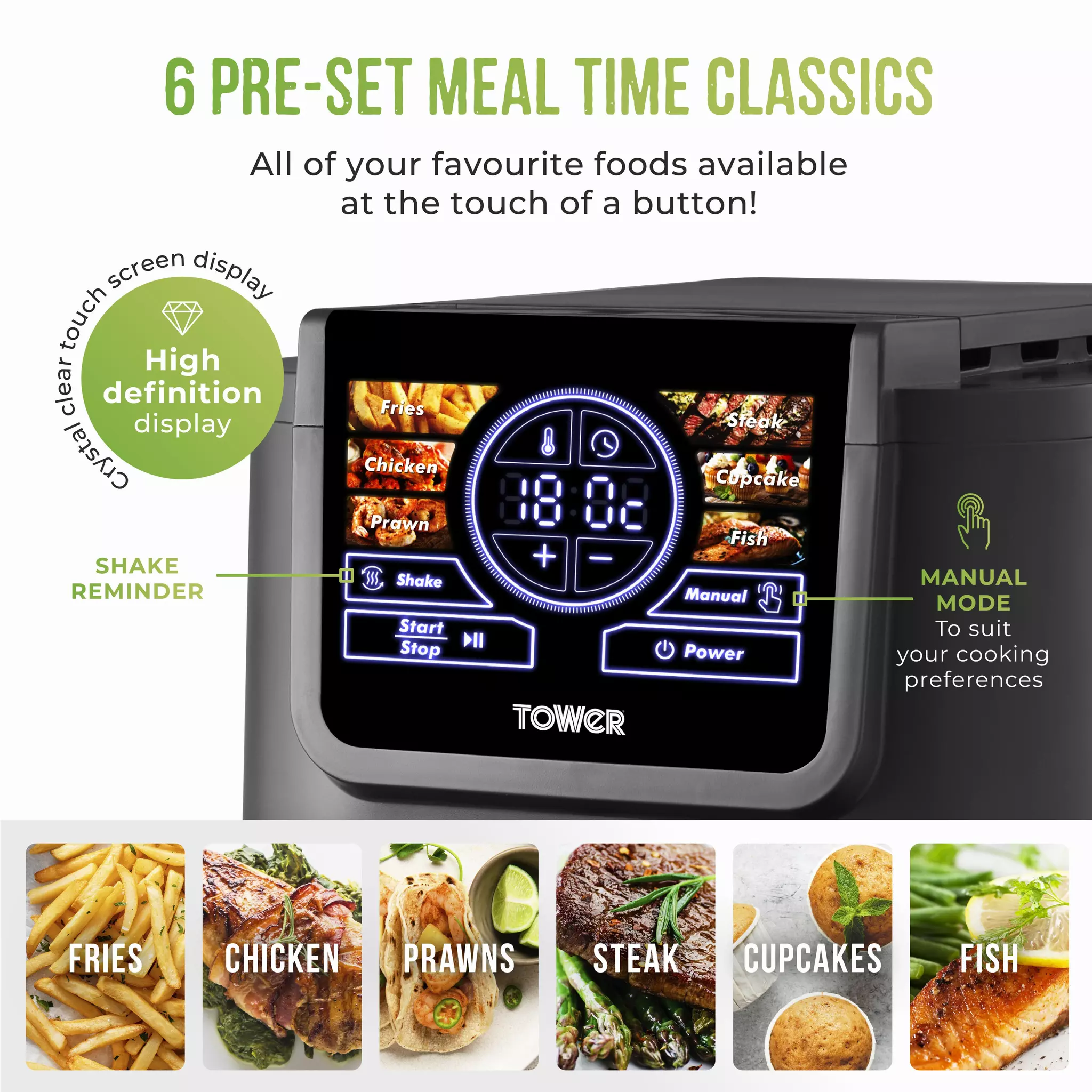 Using AI technology, an intelligent sensor analyses the temperature & volume of food in the chamber to calculate the optimum cooking temperature. Select the dish you want to cook, and the air fryer will do the rest to save time & effort in the kitchen. AI technology removes the guesswork form cooking to create perfectly cooked meals every time.
