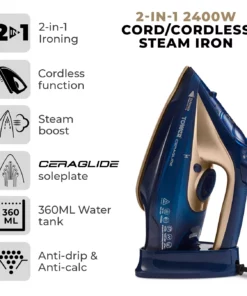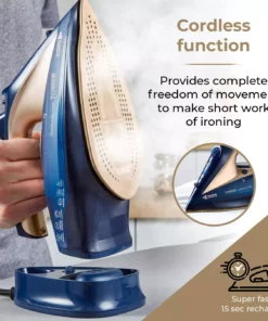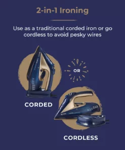 High-performance Ceraglide iron with a non-stick, scratch-resistant ceramic soleplate for an effortless glide across fabrics for 30% faster ironing.