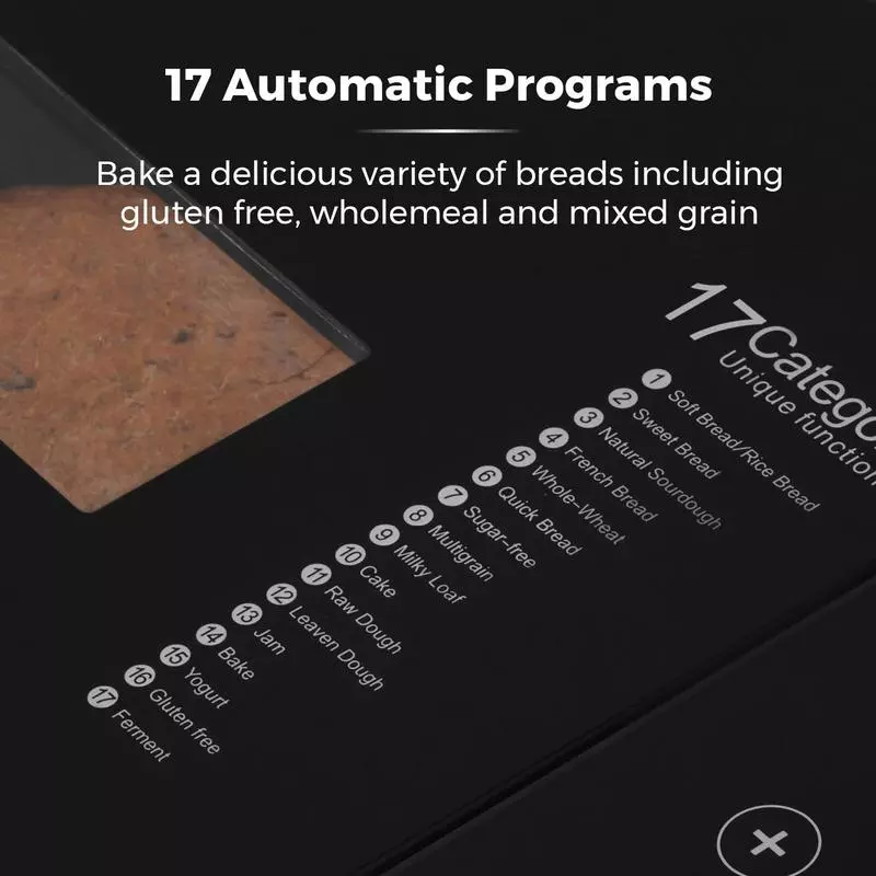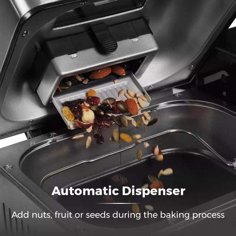 Digital breadmaker with nut dispenser, model T11002. In 60 minutes, prepare a wonderful loaf of fresh bread.