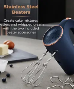 Create delicious cookie dough, cakes and whipped cream with Tower’s Cavaletto hand mixer. The sleek blue and rose gold mixer is packed with a powerful motor, letting you effortlessly whisk through tough ingredients to bake tasty treats in less time.