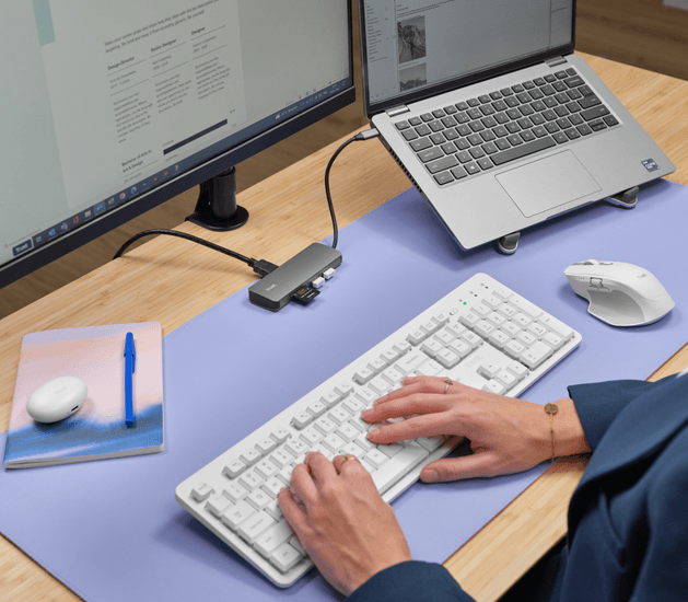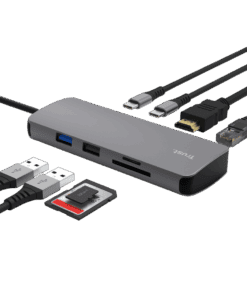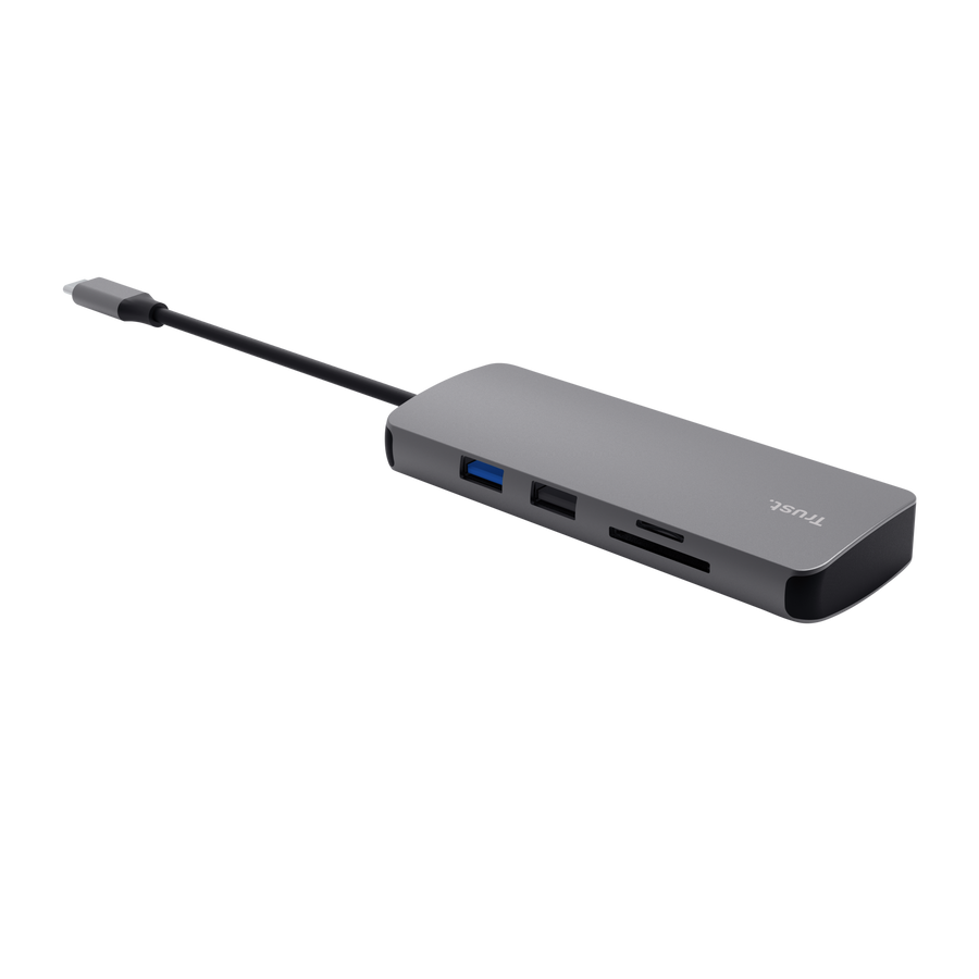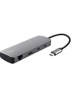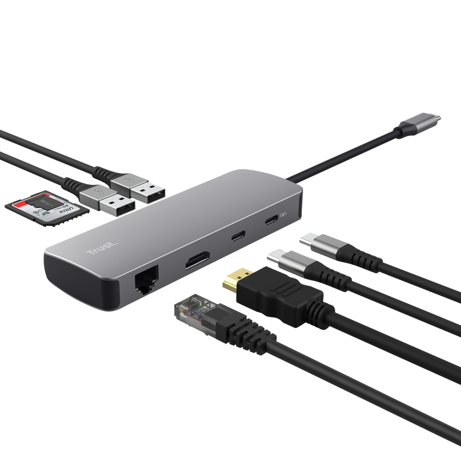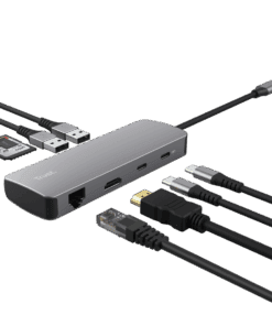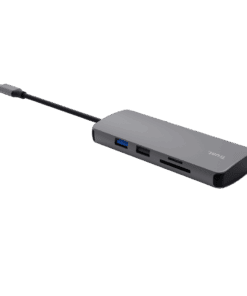 Stylish aluminium multi-port adapter to add HDMI, network, card reader, USB-C and USB ports to your laptop using a single USB-C connection