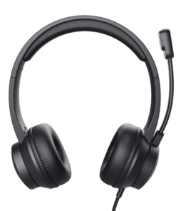 Lightweight on-ear USB PC headset with soft ear cushions and adjustable headband.