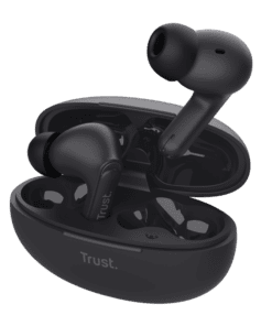 Wireless Bluetooth® earbuds provide comfort along with noise-cancelling microphones for enhanced clarity.