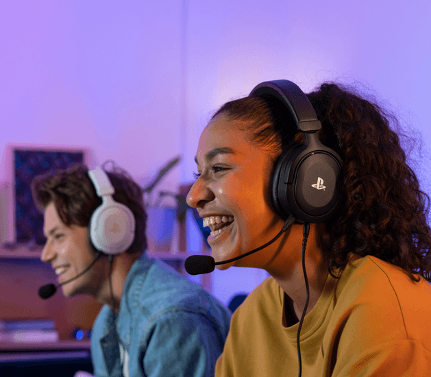 An over-ear gaming headset, crafted from sustainable materials, and officially licensed for use with the PS5™.