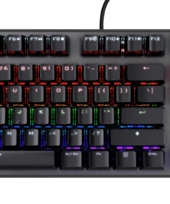 A gaming keyboard equipped with responsive switches, seven color modes, and a gaming mode feature.