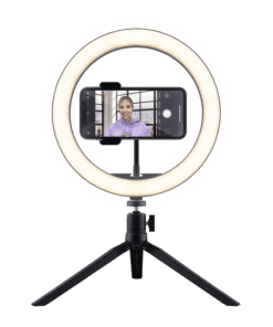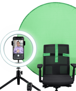 Streaming kit with ring light and green screen to enhance your video setup.