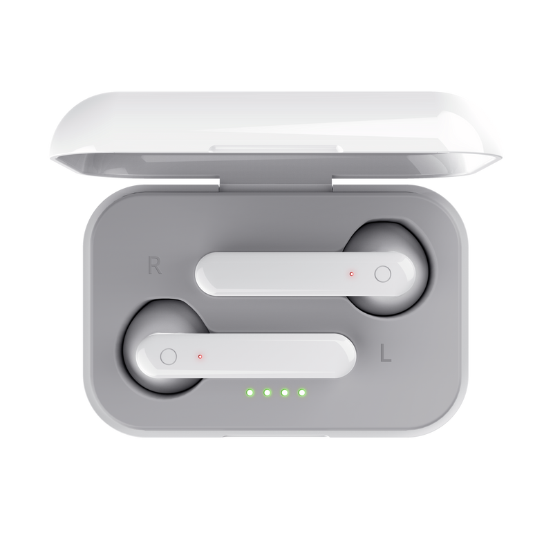 With a playtime of up to 4 hours on a single charge, the music won’t stop there. Thanks to the included case it also serves as a charge on the go, resulting in a total playtime of up to 10 hours!