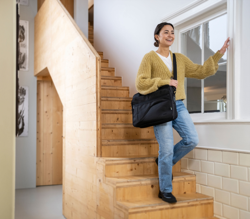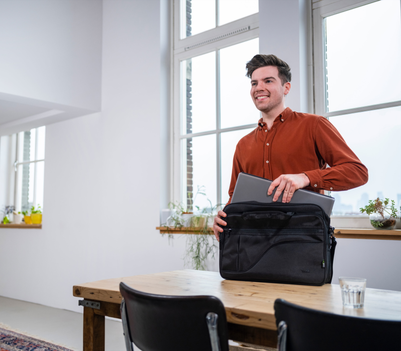 Convenient laptop bag for laptops up to 16 inches; made from recycled PET bottles.