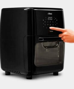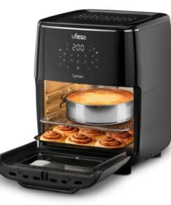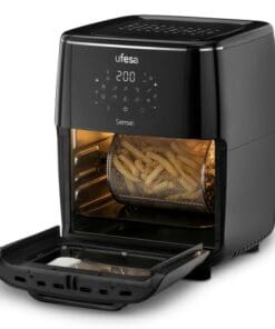 Brand: UfesaPower: 1700WCapacity: 12LSettings: Temperature control from 80ºC to 200ºCDisplay: Digital touch control of time and temperature.12 preset programs: French fries, meat, fish, seafood, chicken, bake, broil, dehydrate, preheat and defrost.Functions: 360º high speed air circulation technologyProduct Type: Air FryersWarranty: Parts 2 years & Labour 2 years