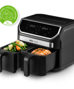 The Thunder air fryer’s 9L capacity, divided into two buckets, allows you to prepare up to two dishes at once!