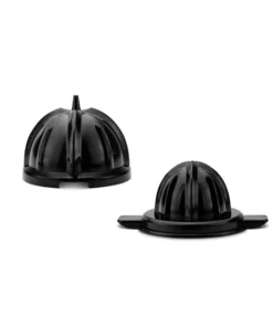 It has two cones of different sizes for large and small fruits, and a continuous pour of the juice.