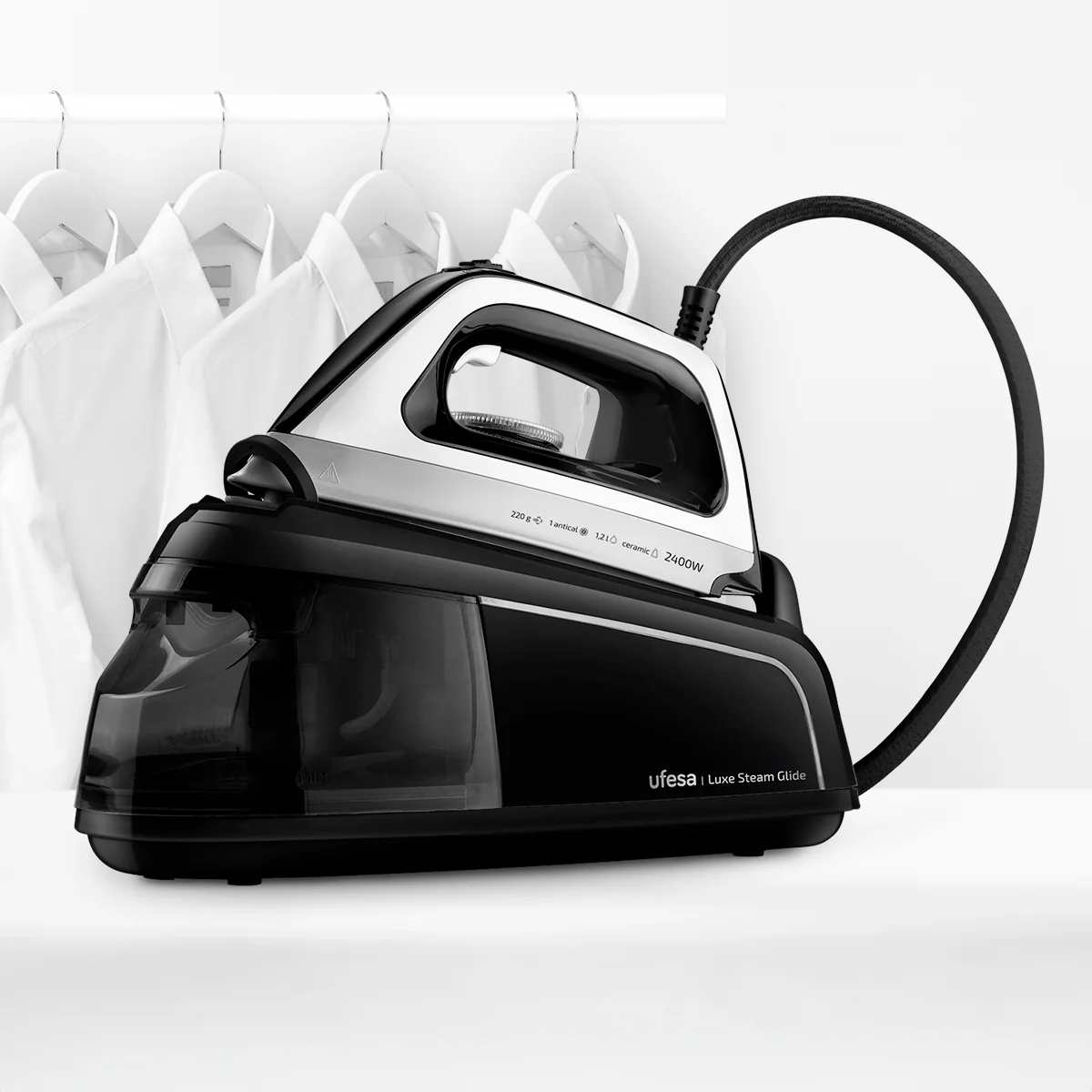 Comfortable steam ironing with the option of permanent vertical steaming with this light and compact steam station and steam iron.