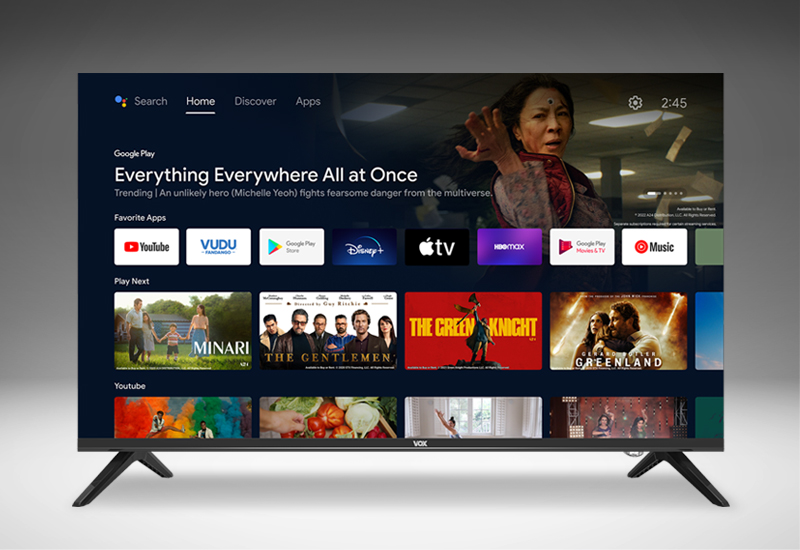 Android TV with Netflix, YouTube, Google Play Movies & TV, the Google Play Store, Prime Video, and other apps are already pre-installed. Enjoy wireless connectivity with the built-in chrome cast.