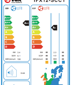 Brand: VOXAir-Conditioner Capacity: 12,000 BTUCooling Energy Label: A++Heating Energy Label: A++ (Warmer Climates) / A+ (Cooler Climates)Dehumidifying Capacity: N/AAir-Flow: HorizontalWi-Fi Connectivity: Yes (Optional)Voice Control: NoTimer: YesPower Input (Cooling Mode): 1.34 kWPower Input (Heating Mode): 0.95 kWIndoor Unit Noise Levels: 53 d(B)AOutdoor Unit Noise Levels: 59 d(B)ARefrigerant Type: R32Indoor Unit Dimensions: 750 x 285 x 200mm (WxHxD)Outdoor Unit Dimensions: 650 x 456 x 233mm (W x H x D)Indoor Unit Weight: 8 KgOutdoor Unit Weight: 18 KgEnergy Label: A++Warranty: Parts 5 years & Labour 5 years