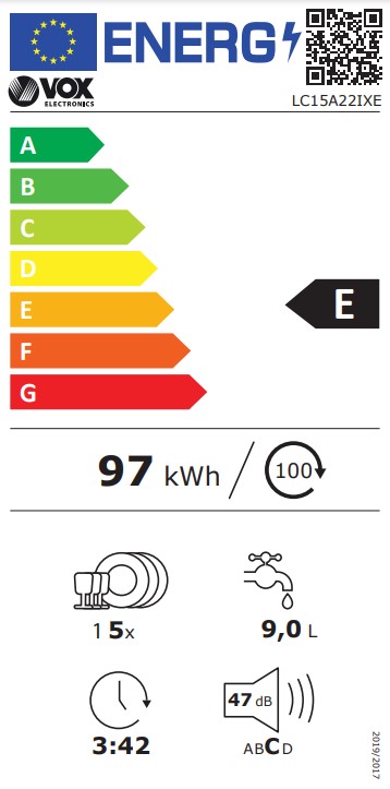 The Vox LC15A22IXE features generous capacity, this dishwasher can accommodate up to 15 place settings, making it ideal for larger households or those who frequently entertain guests. The adjustable racks and flexible interior layout provide versatility to accommodate different types of dishes and utensils.