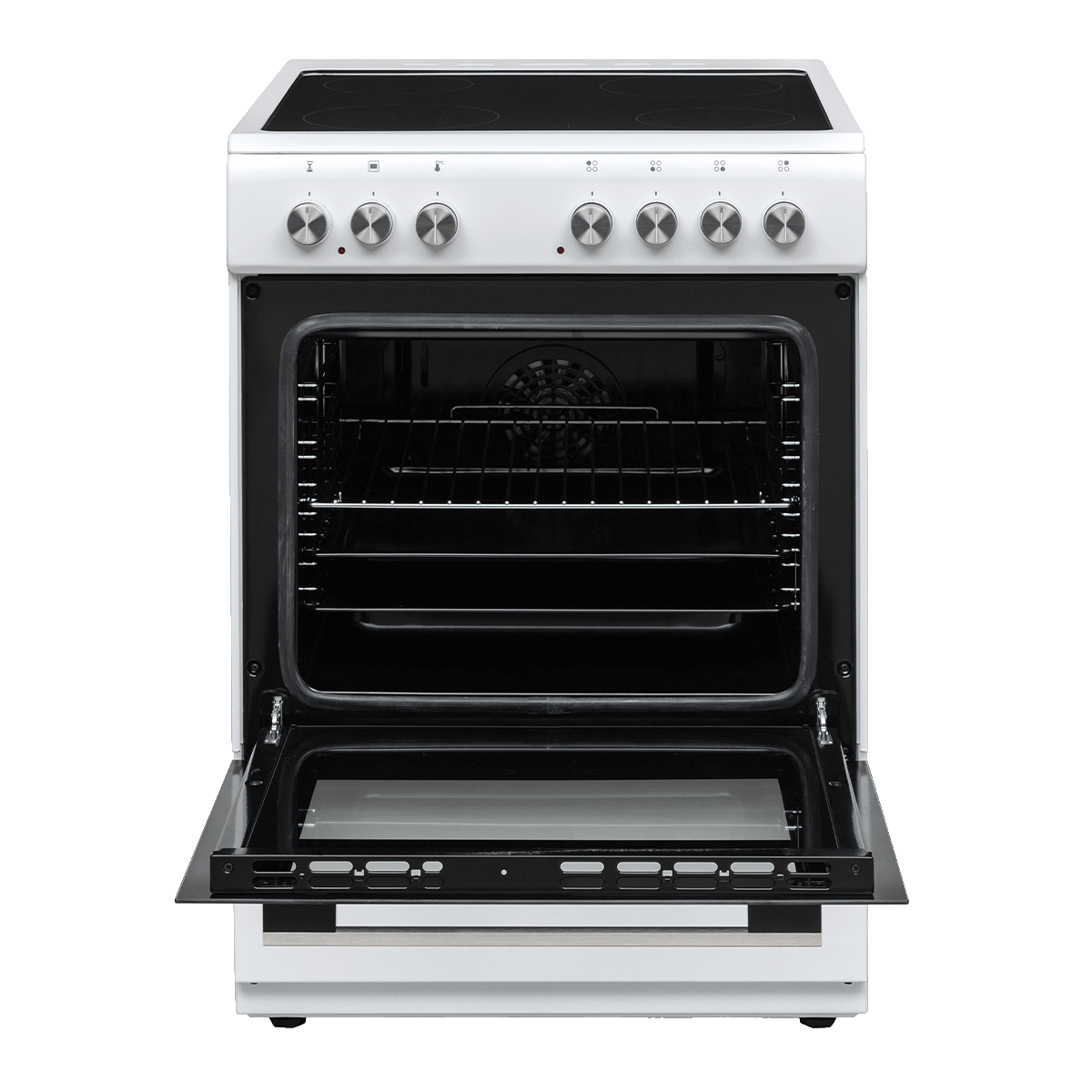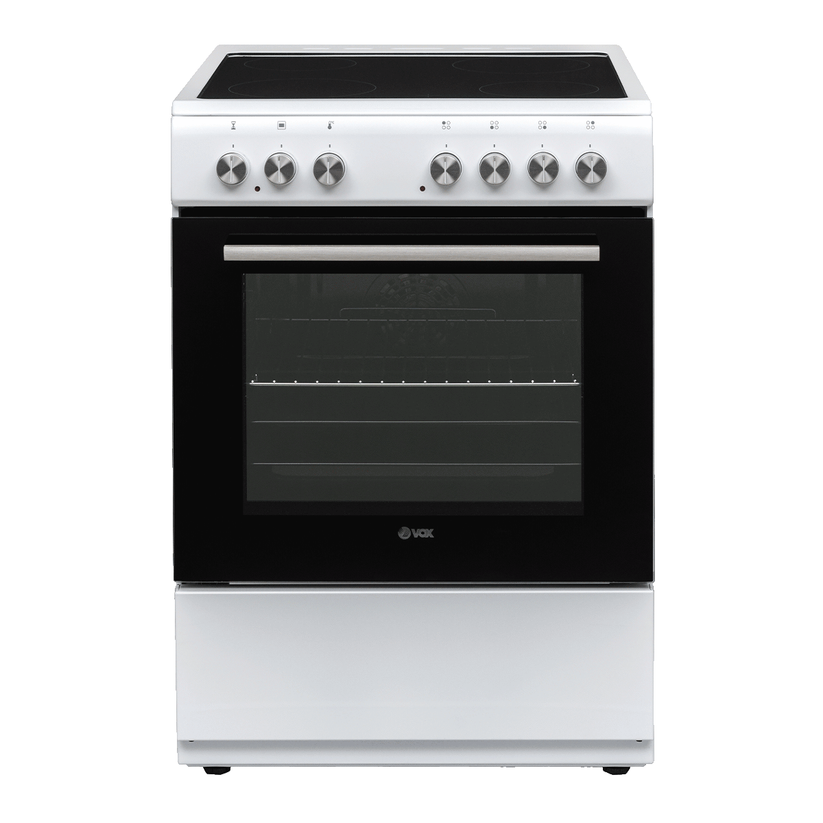 Brand: VOXPower: 8600WCooking zone power: (x2) Glass-ceramic hotplate 145 mm, 1200 W, (X2) Glass-ceramic hotplate 180 mm, 1800 WOven capacity: 69LNumber of cooking zones: 4 Ceramic HotplatesNumber of cooking functions: Defrost Function, Fan Function, Grill + Fan, Grilling, Static Cooking, Turbo FunctionEnergy Label: old-AEnergy Consumption With Fan: 0.80kWh/CycleDimensions: (W/H/D) 600x850x600 mmWarranty: Parts 3 years & Labour 3 years