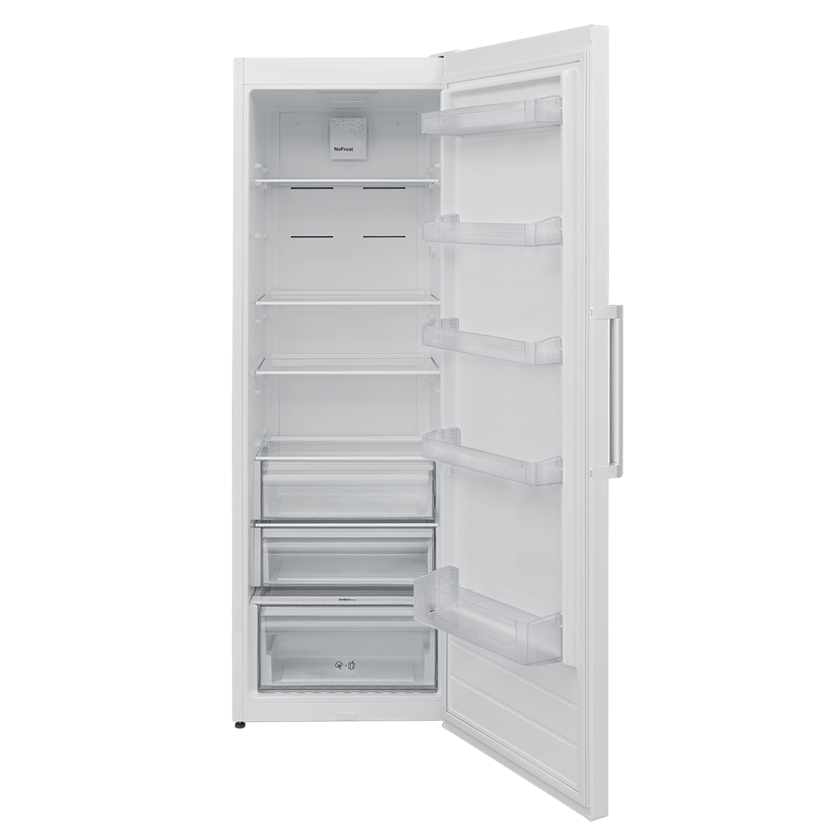 Brand: VOXFridge Capacity: 390LInstallation Type: Free-StandingRefrigeration Type: FridgesNumber of Shelves in Fridge: 4 glass shelvesNumber of Drawers in Fridge: 3 Drawers for Fruit and VegetablesNumber of door compartments in fridge: 5 Door CompartmentsNoise Level: 40dBEnergy Label: EEnergy Consumption: 121 kWh/AnnumDimensions: (W × H × D): 595 × 1860 × 650 mmWarranty: Parts 3 years & Labour 3 years