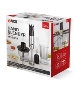 Brand: VOXPower: 600WMaterial: Stainless steel bladesSettings: 2 speedsFunctions: Removable wand, Safety system (Works only if all parts are properly attached)Product Type: Hand BlendersWarranty: Parts 2 years & Labour 2 years