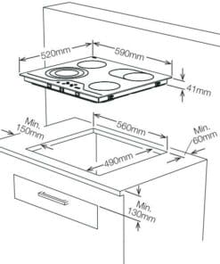Brand: VOXNumber of cooking zones: 4Cook top type: InductionFeatures: Heat indicator for the heating surface, Security lock, Sensor buttonsColour: BlackInstallation Type: Built-inDimensions: (WxHxD): 59×4.1x52cmWarranty: Parts 3 years & Labour 3 years