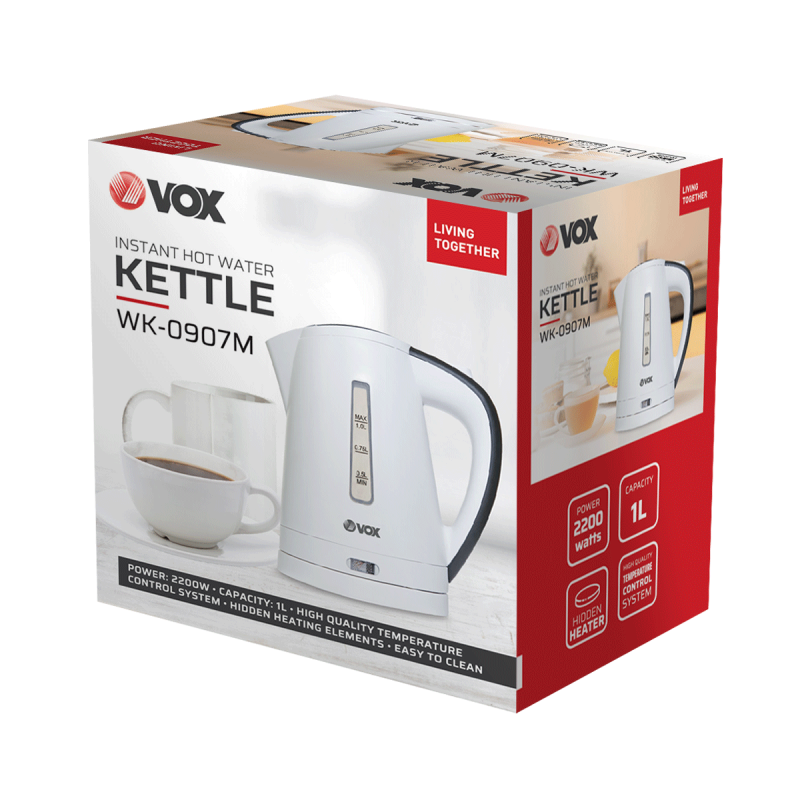 Brand: VOXPower: 2200WKettle Capacity: 1LFunctions: Removal limescale filterProduct Type: KettlesWarranty: Parts 2 years & Labour 2 years