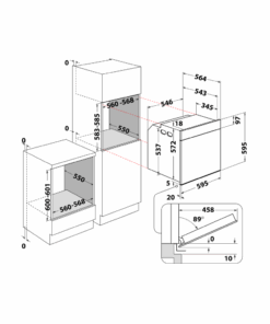 Brand: WhirlpoolPower: 3650 WOven capacity: 73LEnergy Label: A+Energy Consumption: 0.91kwhEnergy Consumption With Fan: 0.71 kwhAdditional Features: 6TH SENSE TECHNOLOGY, Smart Clean, Soft Close, Telescopic shelvesInstallation Type: Built-inDimensions: Depth 56.4cm, Height 59.5cm, Width 59.5cmWarranty: Parts 2 years & Labour 2 years